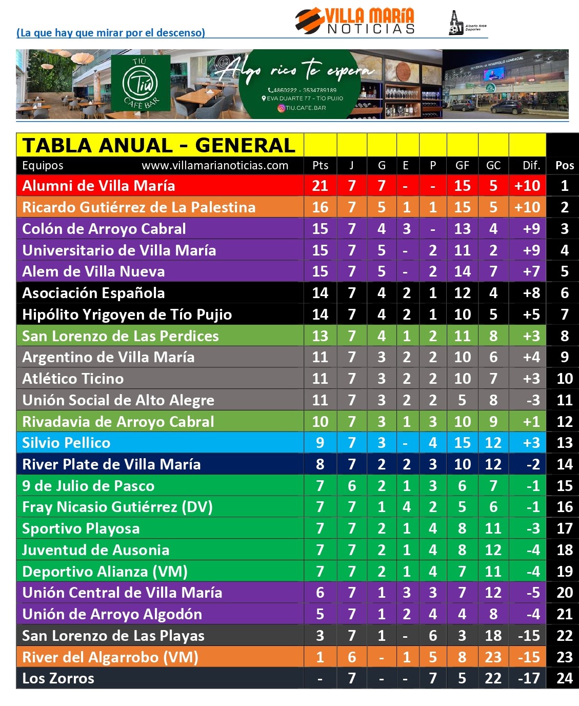 En los restantes encuentros, Sportivo Playosa (Federico Peralta) – Unión Central (Lautaro Cipollone) igualaron 1-1 (con algunos incidentes en el final) y Alianza – Unión Social empataron 0 a 0.