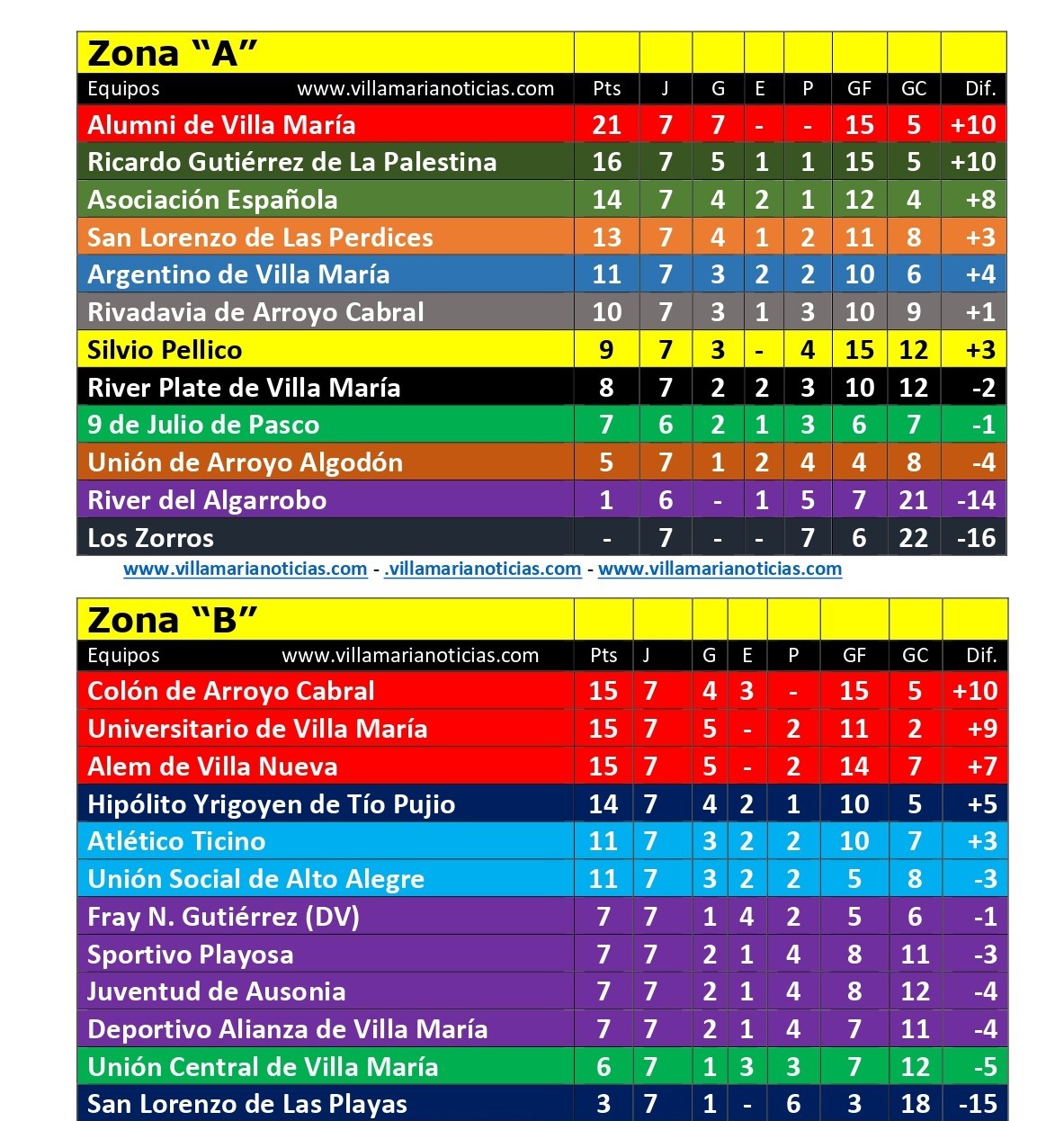 En la zona “B”, con goles de Martín Barrionuevo, Jenaro Heredia y Yair Jofre, Colón volvió a la punta con una victoria por 3-1 sobre Juventud de Ausonia (Giorgis) y también se subió al primer lugar Alem (Maximiliano Leroux) con el triunfo por 1-0 ante Universitario. Ambos comparten la vanguardia con la “Uni”.